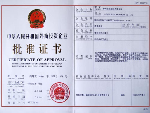 外商投資企業(yè)批準(zhǔn)證書